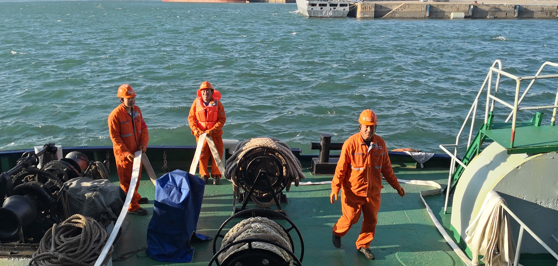 公司配备了快艇,能快速出动,参参与救助活动。 公司有两条船配备了自来水高日压水枪,可装载自来水1500吨,也可以直接切换成海水救火。