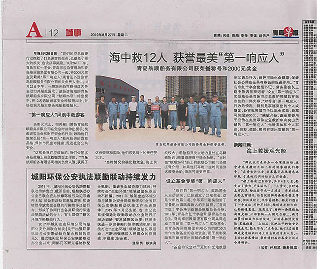 《青岛早报》:海中救12人,获誉最美第一响应人
