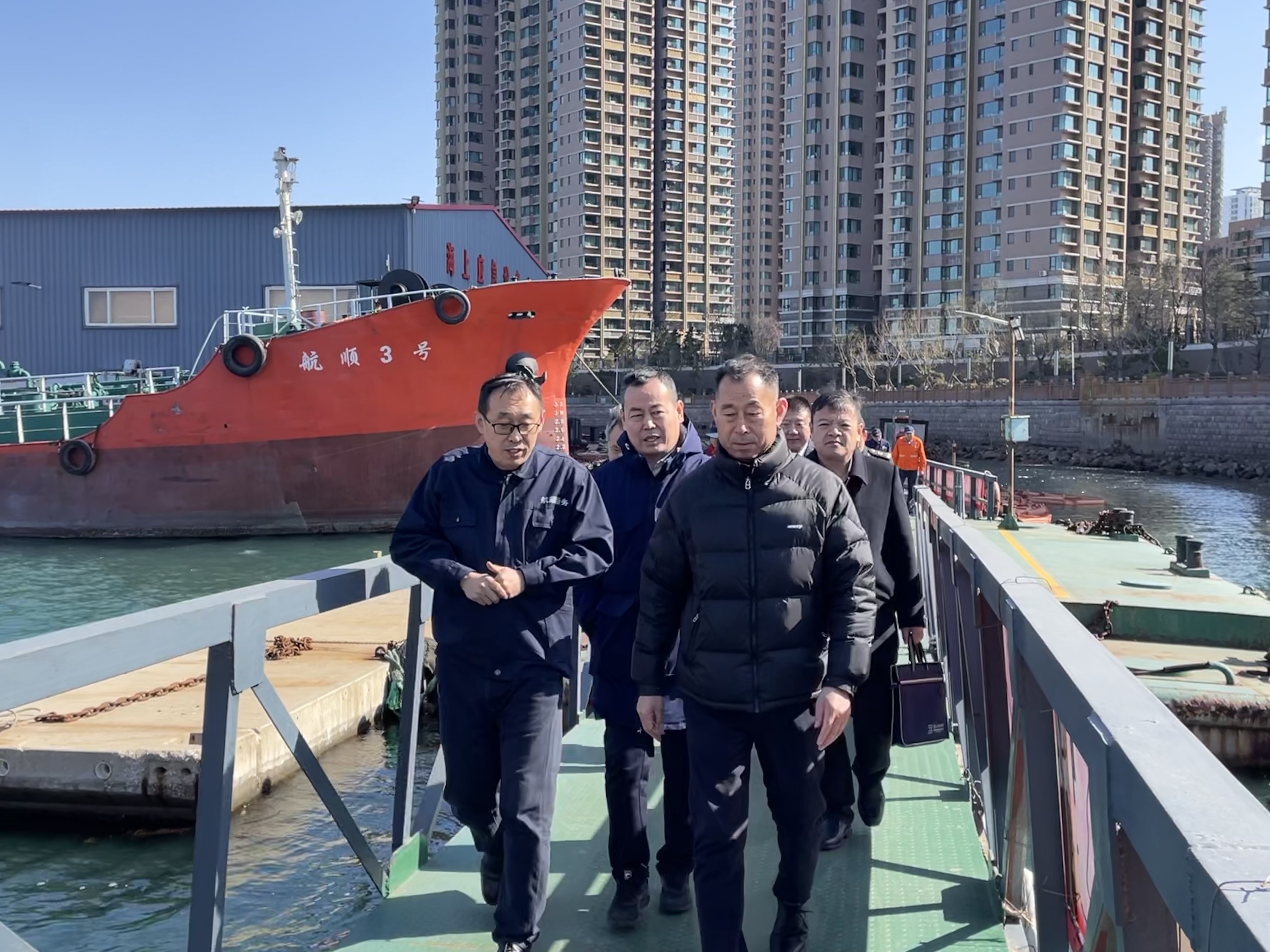 青岛市应急管理局,青岛海事局,青岛港集团领导莅临我司调研溢油应急能力建设情况